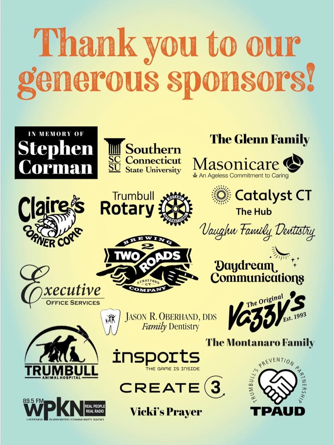 We are also immensely grateful to The Original Vazzy's and Claire's Corner Copia for the delicious, donated food, and to Two Roads Brewery for generously opening their space to host this special event!