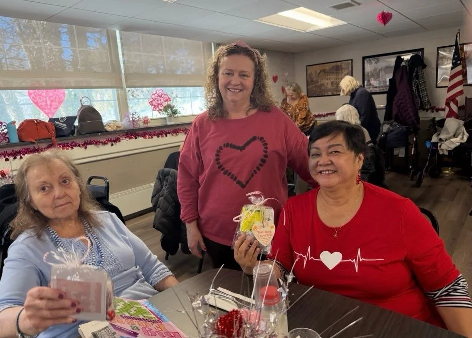 More than 50 students came together with one shared goal: to bring positive affirmations and kindness to older adults who may sometimes feel overlooked. Through handwritten postcards, decorating wooden heart ornaments, and assembling gift bags with donated Bigelow tea bags, cookies, and chocolate, students helped remind residents that they are seen, valued, and appreciated. Seeing these smiles in person reminded us how even small acts of kindness can make a huge difference